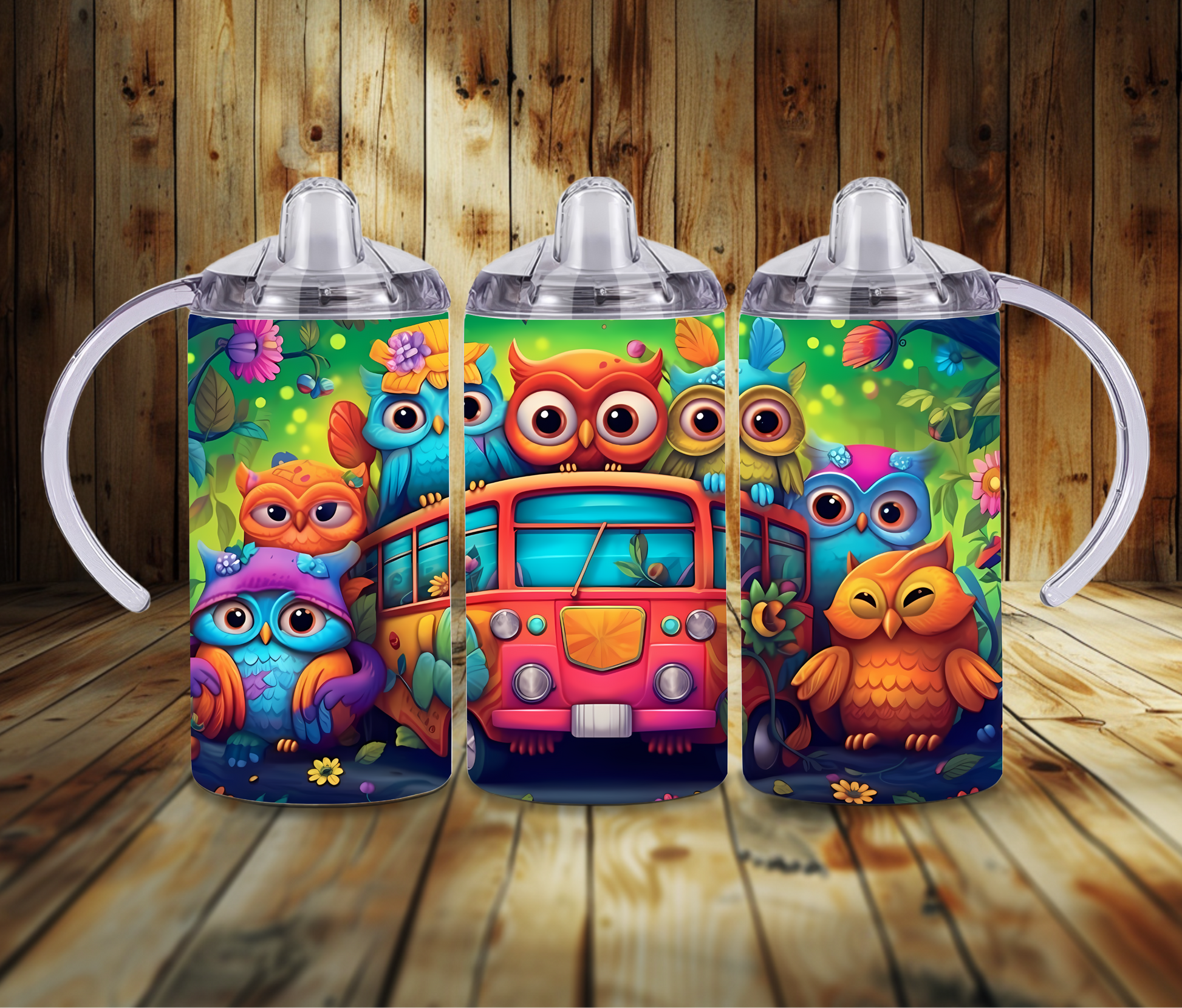 12 oz Sublimated Bus of Colourful Owls on Sippy Cup or Kids Tumbler