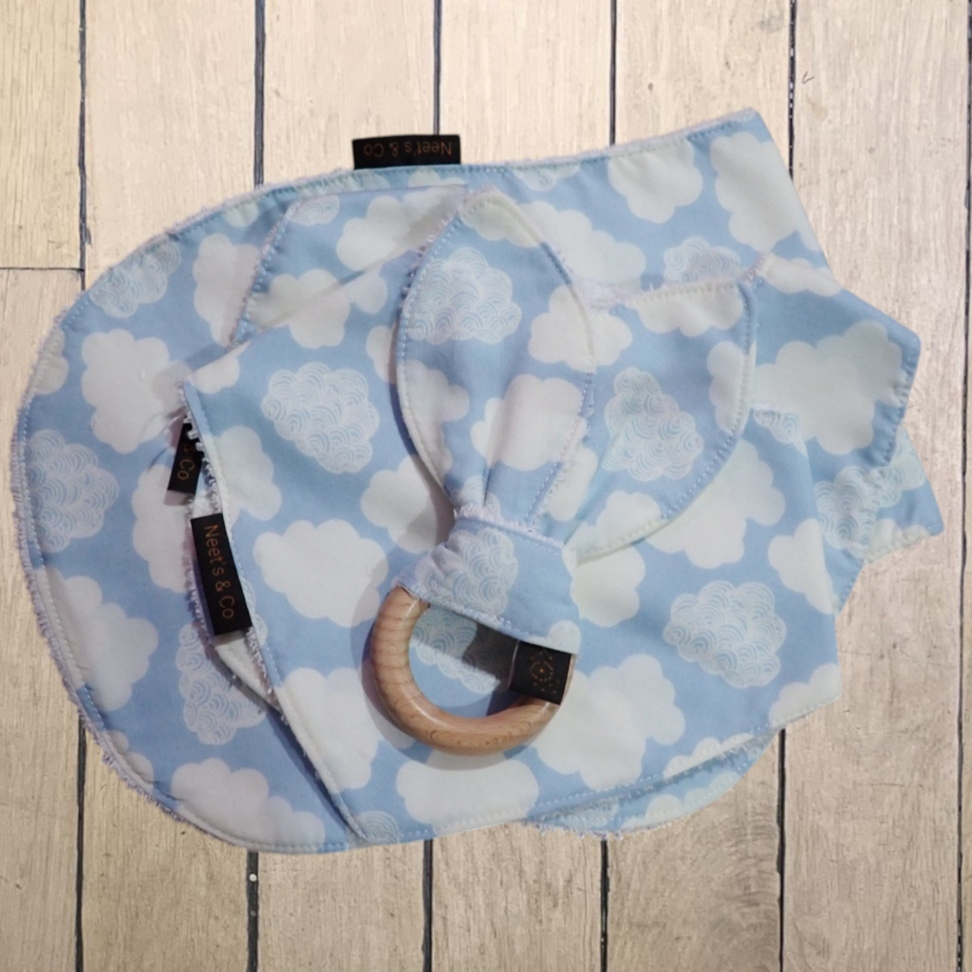 Baby Bib, Bandana Bib, Burp Cloth and Teether - Clouds Design - 3 - 18 months
